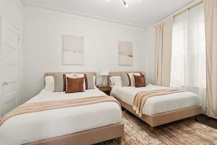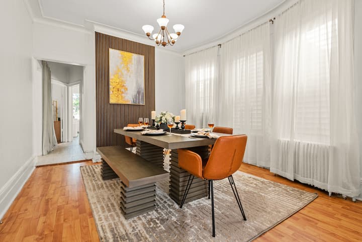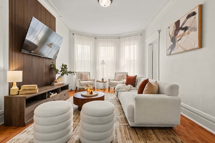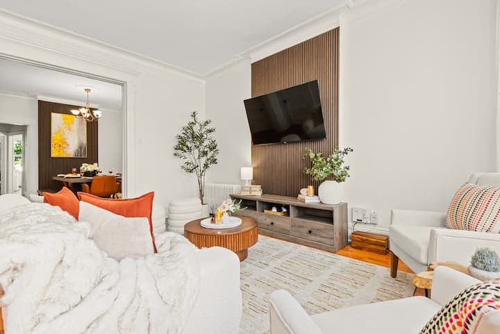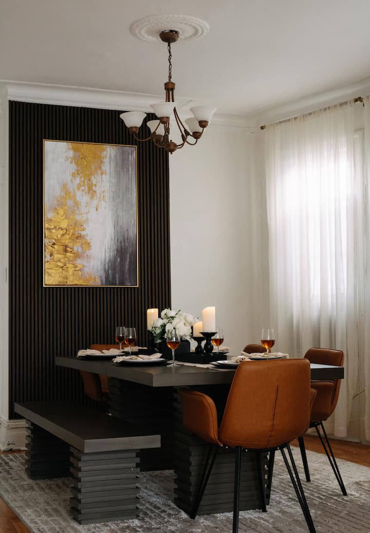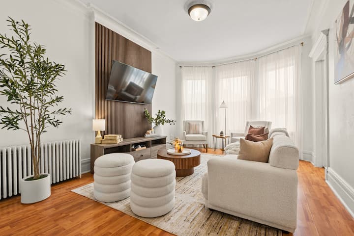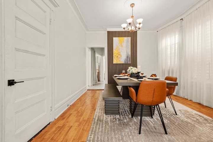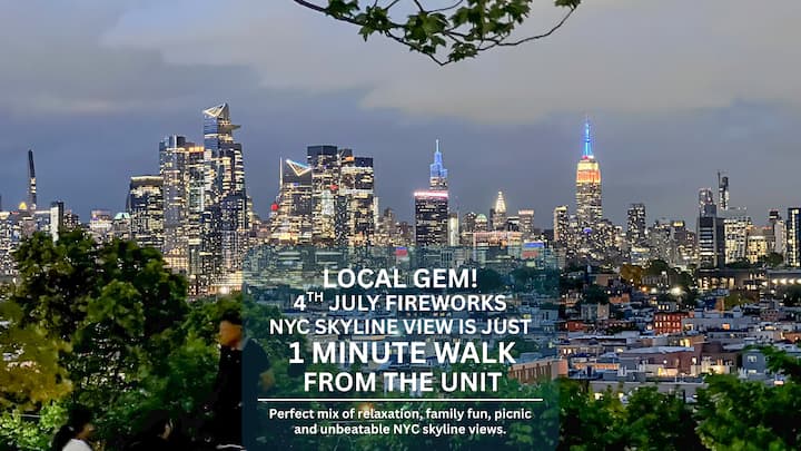 Experience elevated comfort in this newly furnished 3BR retreat just 20 minutes from Manhattan. Thoughtfully designed with warm, modern finishes, this spacious home features plush bedding, a chef-ready kitchen, fast WiFi, and curated decor. Enjoy skyline views from Riverview Park, and effortless access to NYC, Hoboken, and fine dining. Ideal for discerning travelers seeking style, space, and convenience.