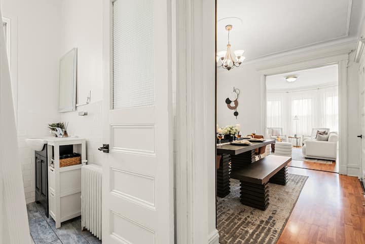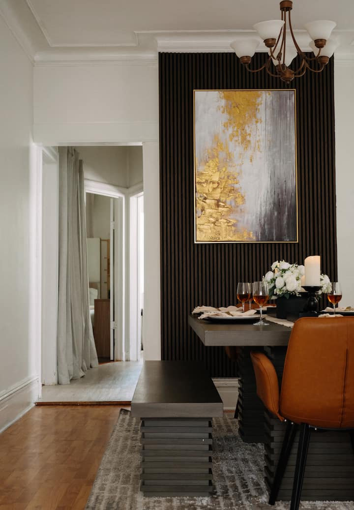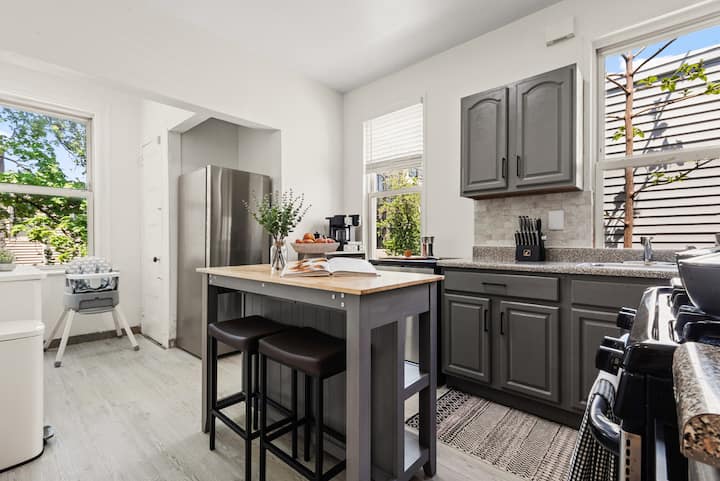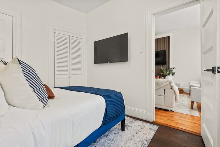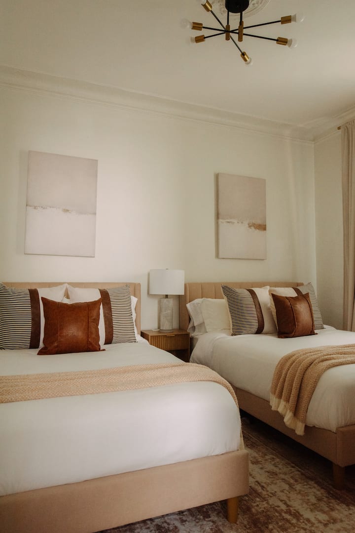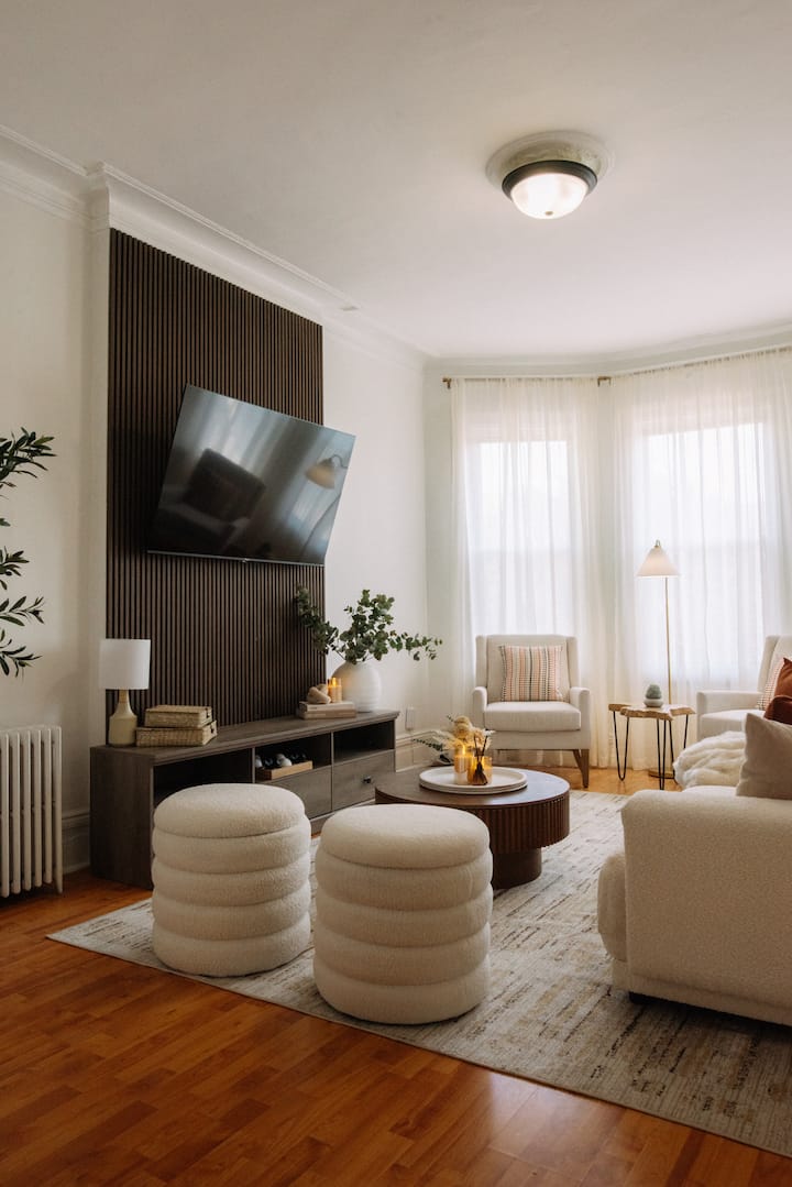 Experience elevated comfort in this newly furnished 3BR retreat just 20 minutes from Manhattan. Thoughtfully designed with warm, modern finishes, this spacious home features plush bedding, a chef-ready kitchen, fast WiFi, and curated decor. Enjoy skyline views from Riverview Park, and effortless access to NYC, Hoboken, and fine dining. Ideal for discerning travelers seeking style, space, and convenience.